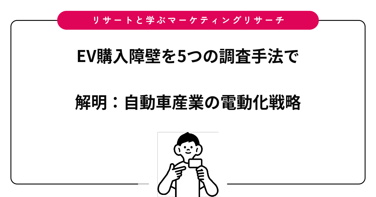 EV購入障壁の解明には、定量調査で統計的全体像を掴み、定性調査で心理的背景を理解し、実地調査で実際の行動を観察するという、複層的なアプローチが必須です。単一の手法では、課題の一面しか見えません。自動車メーカーやディーラーが、より効果的なマーケティング施策や営業戦略を構築するには、これら複数手法を統合した調査設計が重要です。正確な課題認識が、EV市場拡大の鍵となります。