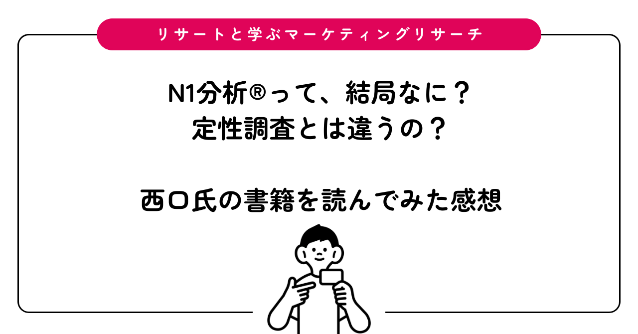 N1分析®の「N1」とは「N=1」が由来のようでした。マーケティングリサーチ業界だとn=1(エヌイチ)という言葉がありますが、N1はエヌワンと呼ぶようです。ちょっとかっこいい。