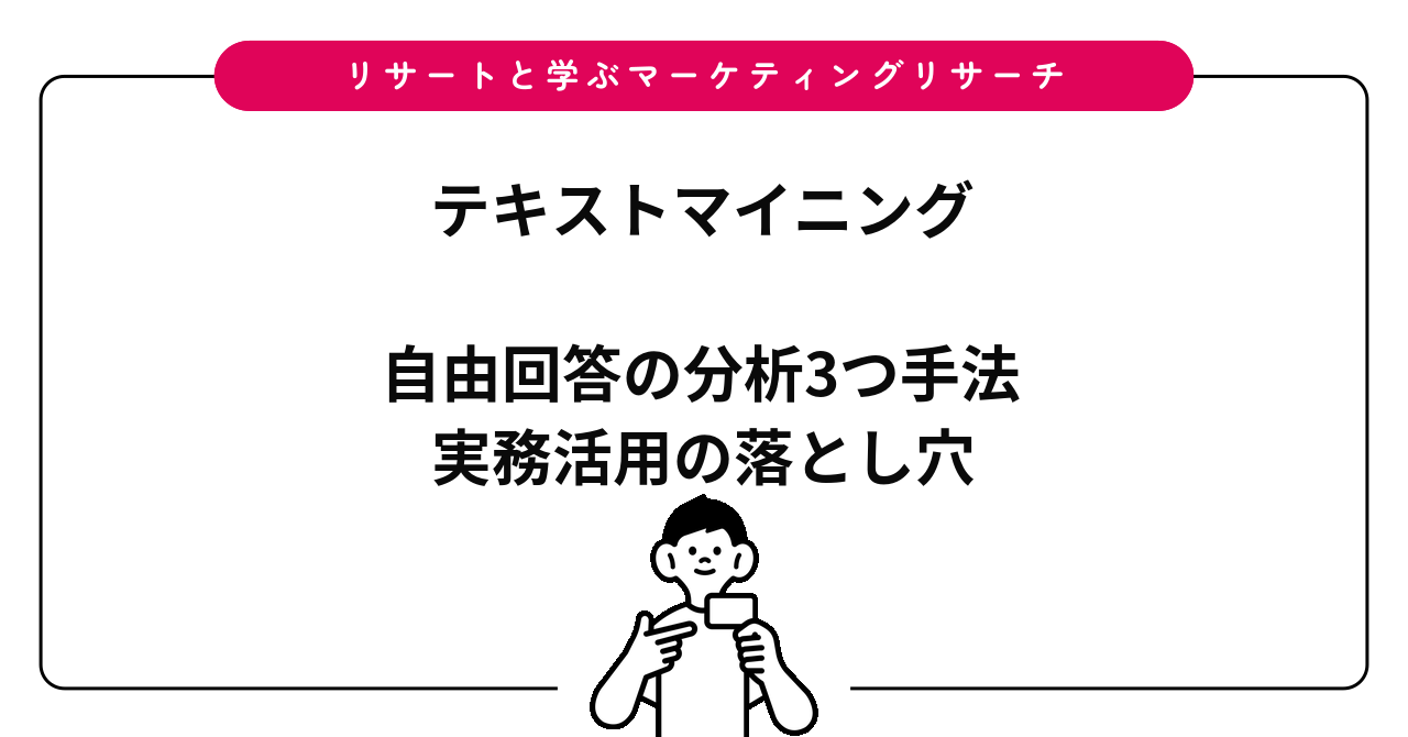 「○○について、良かった点と改善してほしい点を具体的にお書きください」のように、回答の方向性を絞る設問にすれば、集まるテキストに一定の構造が生まれます。調査票の作り方の段階で、後工程の分析手法を見据えた設計が必要です。