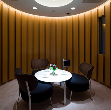 1~2人の少人数専用のインタビュールームです。応接室風にイスもゆったりくつろげるソファータイプをご用意。