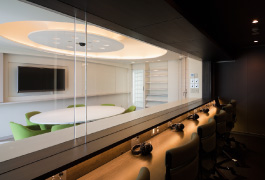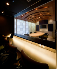 モニターTVでインタビューの模様をご覧頂けます。 ROOM ORANGEと両ルーム同時にお借り頂いた場合はミーティングルーム間のドアを開ければルームがつながる設計になっています。