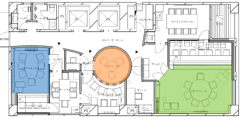 ROOM BLUEと同時にお借り頂いた場合はミーティングルーム間のドアを開ければルームがつながる設計になっています。