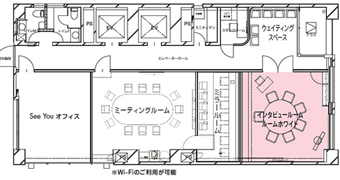 ルームの余裕スペースに機器の持ち込みや、お子様と同席でのインタビューも可能です。